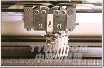 前、後有針腳裝置,可單獨織、吊針腳,可用來織方格、鳥目、直條等組織花樣。 |