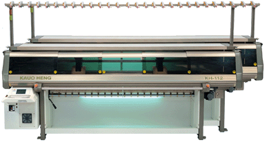 雙機頭,可合併、分離使用,具雙面提花編織、翻針系統。
