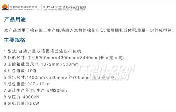 MDY-400型液壓棉花打包機