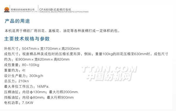 您所在的位置:紡機網 > 產品庫 > CFA905型 臥式液壓打包機