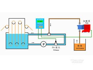 本系統(tǒng)適用于染整加工的絲光水洗等對ph值控制有要求的環(huán)節(jié),通過對ph值準確測量,控制加酸或堿,將ph值控制在設(shè)定范圍內(nèi)。
