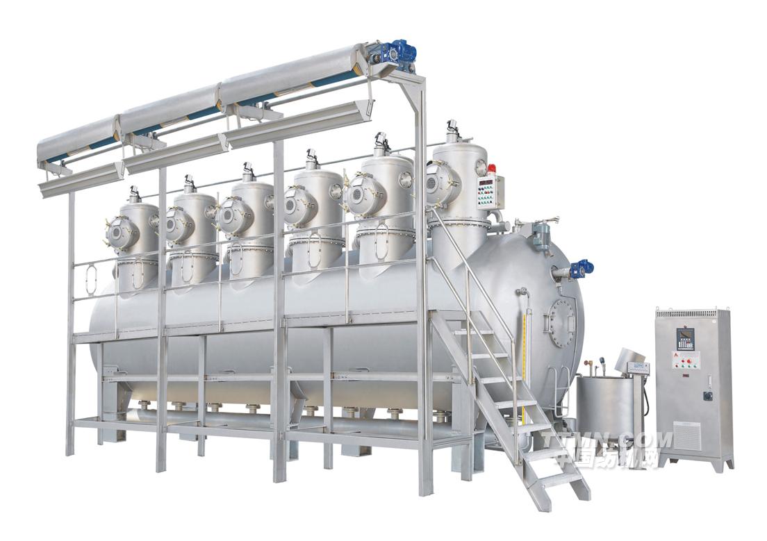 經過不斷開發和研究而產生的YOH型高溫染色機系列,集多項高溫染色研究成果于一體.結合了先進的自動化控制和檢測系統,配備了精密的儀器,儀表和閥門,使染色全程工藝時間大大縮短,并提升了染色品質.采用了成熟的液體分流和染液快速循環技術,使滿載時浴比降到1:5~6,增加了產量和節省能源,減少污水排放.高置噴嘴和提布輪,使儲布槽達到特大的容量.