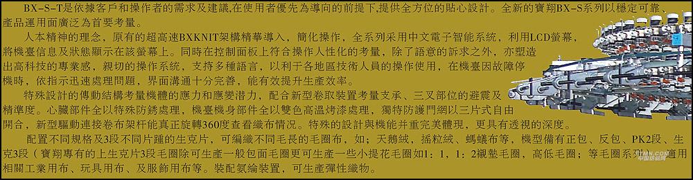 您所在的位置:紡機網 > 產品庫 > BX-S-F單面毛圈針織圓緯機