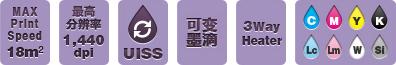 JV33-130A、JV33-160A只能用于水性顏料墨水及水性升華墨水。不能使用溶劑墨水。另外,JV33-130A、JV33-160A沒(méi)有搭載介質(zhì)卷取裝置和3WAY智能加熱器。