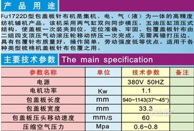 您所在的位置:紡機網 > 產品庫 > FU1722D型包蓋板針布機