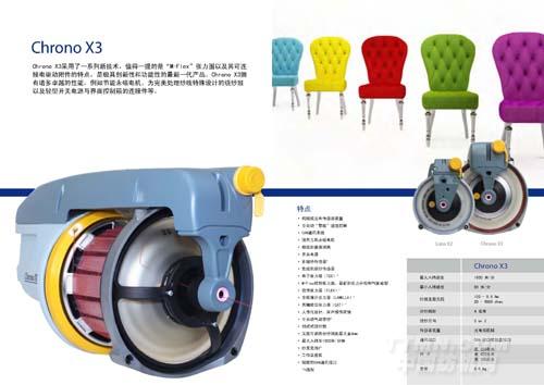 新Chrono X3儲緯器融入了大量新技術,最具代表性的是“M-Flex”最新張力圈的使用。還有高效節能的永磁電機,特殊設計的繞紗鼓在紗線的控制上也有著出色的表現。新Chrono X3儲緯器可以和輕便小巧的開關電源結合使用。
