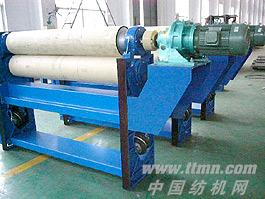 該產品主要用于絲光機、皂洗機、練漂機等印染前處理設備織物烘干機前的軋液及浸軋化學品,需達到一定軋余率之用。通過兩根高硬度、高彈性的橡膠輥,盡可能降低織物的帶液量,提高烘干效率,以滿足印染工藝的要求