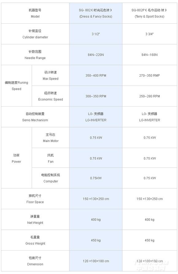 SQ-802型與SQ-802P型是為了滿足廣大客戶的需求而精心設計、開發的配備多種改進型裝置的襪機。是操作者極易掌握操作技能和運作原理的實用化高效襪機。