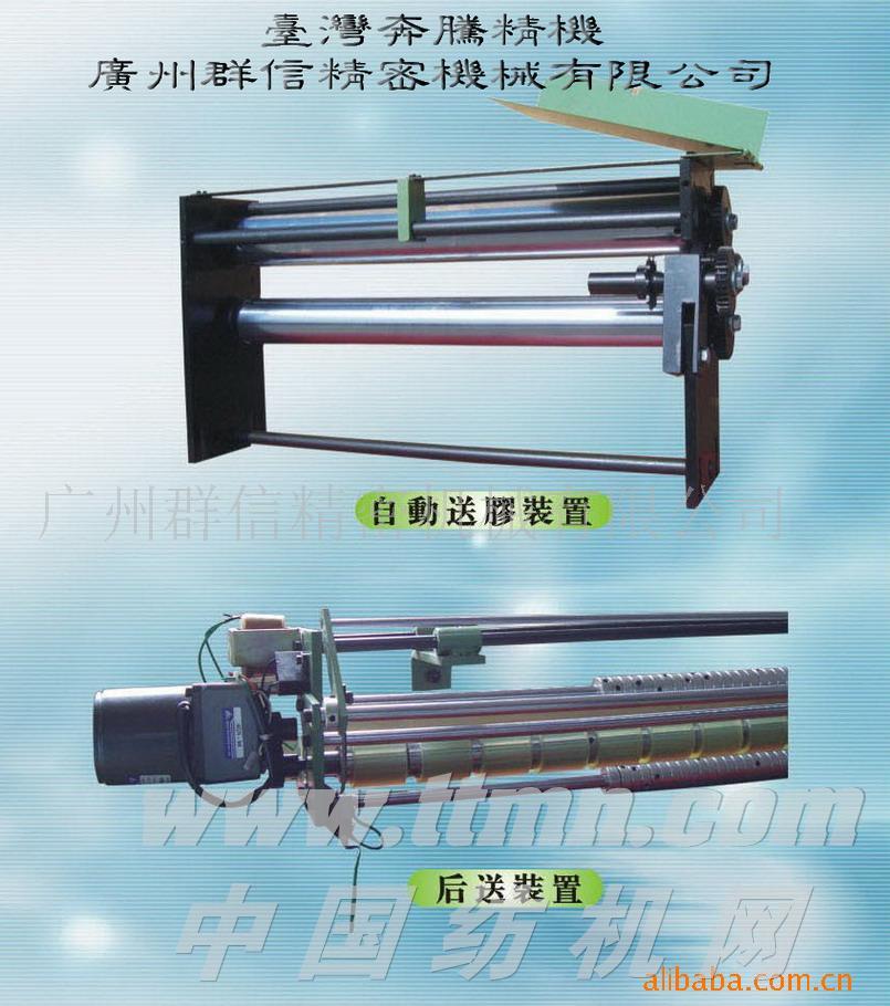 后送裝置用途:裝在織帶機后架上,用于將織帶機前面織出帶子拉到后架后面裝箱收帶。