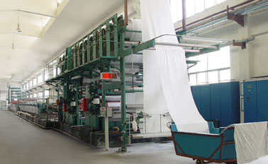 平幅進布→透風→MH/H564B三輥軋車→繃布輥(14只)→MH/H564C三輥軋車→繃布輥(10只) →浸漬槽→M1483B二輥軋車→MA/H121D布鋏拉幅機→M1484B三輥軋車→HM511F直輥槽→M1483A二輥軋車 →M1532水洗機 →(M1483B二輥軋車→M1513D水洗)×5 →M1483A二輥軋車→M1515水洗機→M1484B三輥軋車→HM2655B烘筒烘燥機→平幅落布