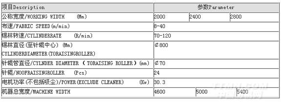 設(shè)置擴幅輥、烘布輥、靜電消除器等選用部件,用于不同織物的起毛。