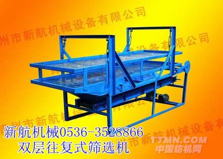 往復式無振動分離篩是專門用于紡織品、化學纖維、玻璃纖維、棉麻切碎品、紙制品、化工、塑料垃圾處理等多種行業使用的專業產品。該機采用偏心輪、雙連桿、整體大漏斗、遠距離輸送帶的結構作業,具有結構先進,往復運動頻率可調,處理能力強,噪聲小,便于維修,堅固耐用的特點。經過剪切破碎后的物料由于比重較輕,在其他分離篩不能完成篩選的情況下,對物料往復混合,使篩選更徹底,生產過程中大粒塊物料隨篩體斜坡向前滑出,而需用長短大小的物料經整體式漏斗落入傳動帶被送出收集。