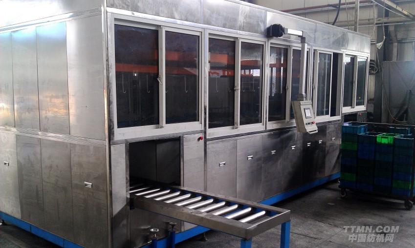 該設備主要采用多臂式位移組合機械手,根據工藝完成整個清洗過程,并設有拋動清洗系統,其槽式有3槽至11槽不等。系統集超聲清洗—鼓泡漂洗—高壓切風—熱風干燥等于一體的清洗工藝,也可根據客戶工件要求擬定清洗工藝。該設備的一個主要特征在于它多臂輸送,即所有的操作步驟均是連續性的,組合機械手將所有的工裝藍一起提起,然后將它們輸送到下一個清洗工位,這種方法可大大提高生產效率。各種規格、尺寸、均可按客戶要求定做。