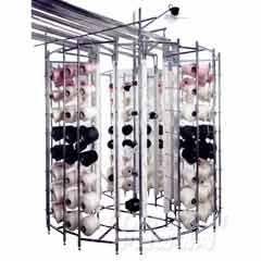 風扇除塵紗架是結合本公司D型紗架以及5個風扇馬達的除絮系統所組成的圓管型組合紗架;紗線通過導管輸出,減少了飛絮的形成。
