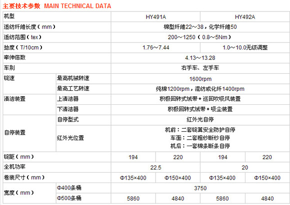 HY491A,HY492A型粗紗機是宏源在制造FA系列粗紗機的豐富經驗基礎上,運用先進的電腦控制技術和變頻調速技術,開發的新一代無錐輪粗紗機,具有機電一體化程度高、操作簡單、生產效率高、維護保養方便等優勢。適用于普梳和精梳棉型纖維的純紡或混紡,是紡制高質量紗線的最佳選擇。
