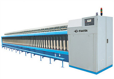 本機機電一體化程度較高,主電機采用變頻調速,電氣控制采用可編程控制器(PLC), 傳動牽伸機構先進,卷繞、成形、落紗、斷條、斷頭停機等實現了自動和半自動,被譽為勞動強度低,棉紗質量與生產效率高而穩定的優秀粗紗機。