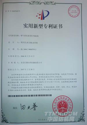 噴氣織機產品質量合格證書 粗紗機產品質量合格證書