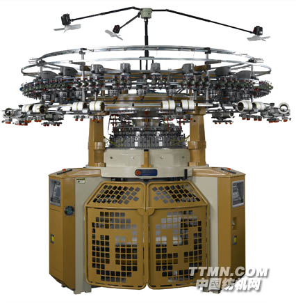 單雙面羅紋電子式移圈大提花針織機(jī)TY-DETR是大渝機(jī)械(廈門(mén))有限公司在2011上海紡機(jī)展上展出的產(chǎn)品之一,如圖: