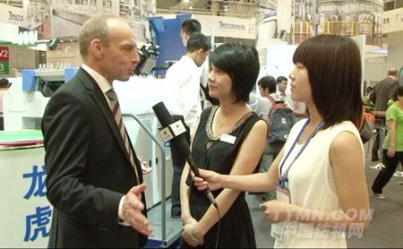特呂茨勒(上海)公司總經理施博安正在接受中國紡機網TTMN采訪