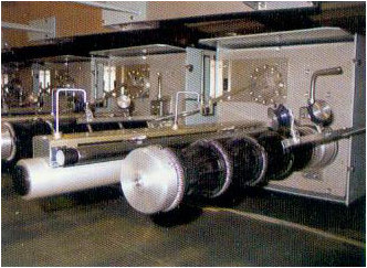 在R535A型粘膠紡絲機的基礎上,保持其工藝結構,結合先進的紡絲技術,利用現代的高科技手段,實現紡絲過程智能化控制,更換紡絲品種無級化、自動化,紡絲操作更加簡便、高效。將車頭箱更換為多電機變頻傳動,升降系統用電子防疊取代差微箱,增加氣動翻轉漏斗完成自動落絲和自動生頭,自控部分運用PLC、工控機、觸摸屏、伺服電機、遠程通訊等新技術。改進后的新型粘膠紡絲機,在技術上和絲的質量上,都達到或超過了世界粘膠紡絲的先進水平。