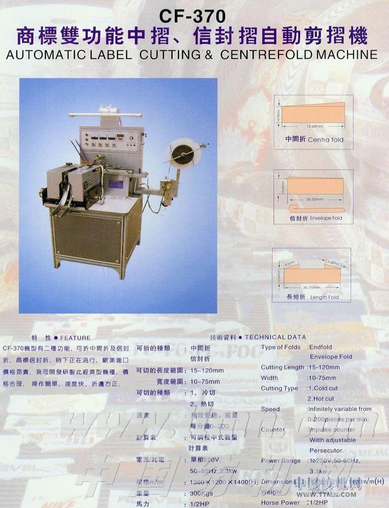 CF-370商標雙功能中摺、信封摺自動剪摺機 -- 臺灣優耀企業有限公司