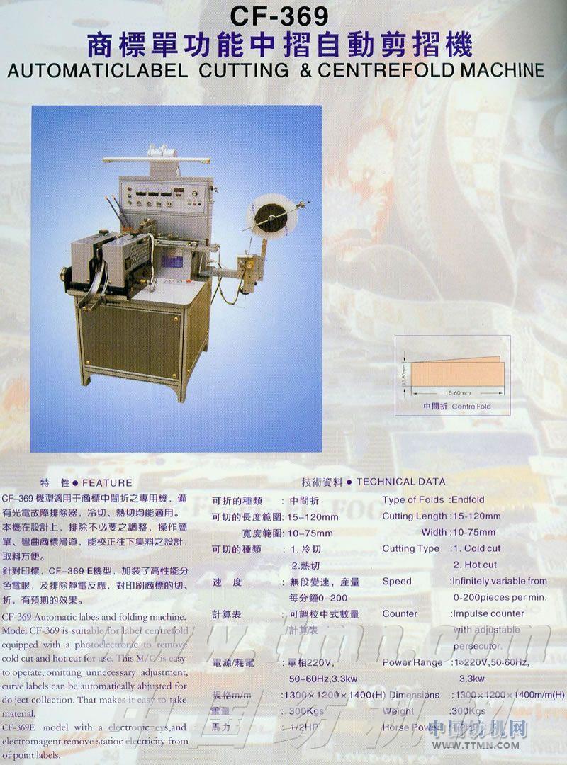 CF-369商標單功能中摺自動剪摺機 -- 臺灣優耀企業有限公司