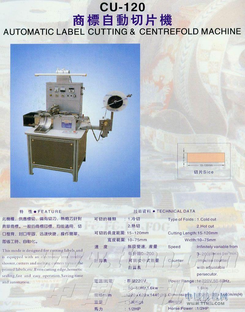 CU-120商標自動切片機 -- 臺灣優耀企業有限公司