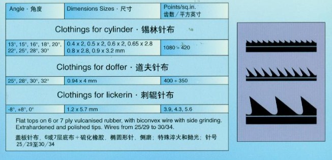 適用于棉紡、人造纖維、合成纖維梳毛機(jī)金屬針布