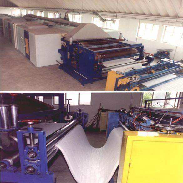 本機(jī)主要用于棉及合成纖維絮片的后處理生產(chǎn)線上。棉及合成纖維經(jīng)充分混合梳理后均勻鋪在木斜簾上,在上、下輸送網(wǎng)夾持下進(jìn)入烘房內(nèi),經(jīng)熱風(fēng)噴射,出烘房后迅速冷卻,以達(dá)到絮片的熱熔固化。