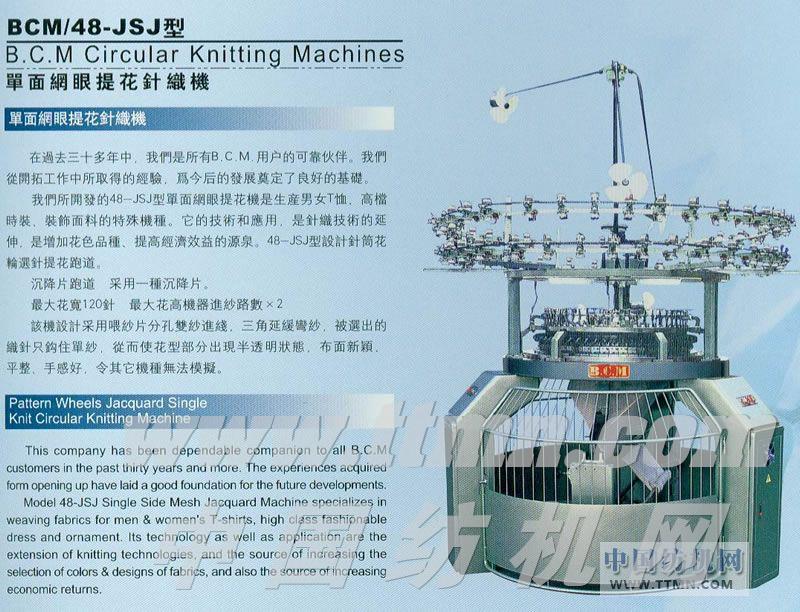 BCM/48-JSJ型單面網眼提花針織機 -- 臺灣榕煙臺關系企業