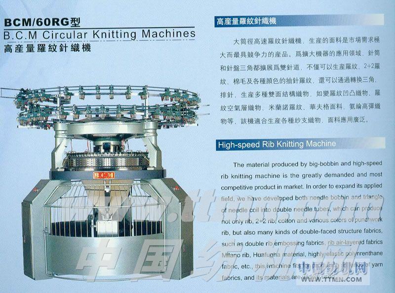 BCM/60RG型高產量羅紋針織機 -- 臺灣榕煙臺關系企業