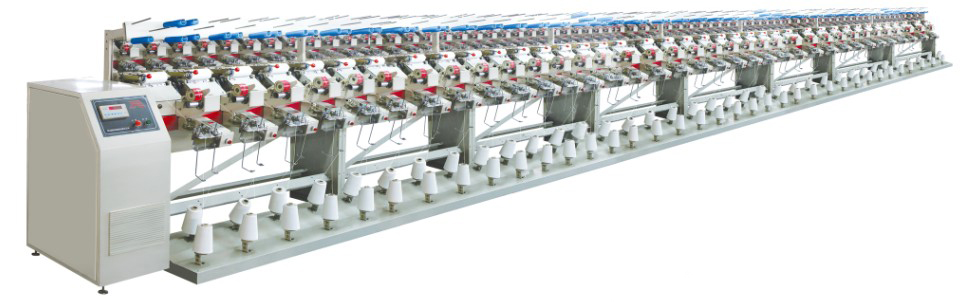 倍捻機的前道設備,把不同的規格的原料筒子并合成可在倍捻機上加工的平行 筒子,并合提供氨綸絲與其他紗線的并合功能。【 產品特點 】>>可對各種短纖維,長纖維的單紗進行并合加工>>采用了單錠電機驅動和變頻調速,使卷繞線速的調節更簡便,工藝 調節更靈活