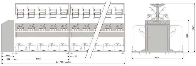 本產品可把2~4股棉、毛、及混紡紗線合并卷繞成并紗筒子,適用于倍捻機等后道工序的加工。【 產品特點 】>>實行機電一體化設計制造,結構簡練,易安裝調整,操作簡單方便, 并具有中央電腦程序設置,單錠電機、電子定長、滿筒自停、電子 防疊、變頻調速、單錠控制、斷紗自停、單錠清零、數據記憶、產量 統計等功能>>可選購裝置:隔紗板、空器捻接器、清潔裝置、導輪配置。【 技術參數 】