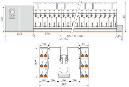升降速度5~60mm/s整機尺寸14600×3400×1850mm(含二排筒子架)