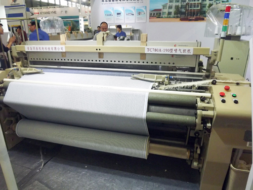 青島同春機電科技有限公司在此次展會上展出了TC780A-190型高速噴氣織機等產品。TC780A系列噴氣織機是公司研發的另一種新型噴氣織機。由于采用了高剛性結構的機架、大直徑的織軸齒輪以及內裝在油浴中的積極式送經驅動軸等,使織機進一步實現了高速化,可以更加靈敏地適應高密織物的織造要求。