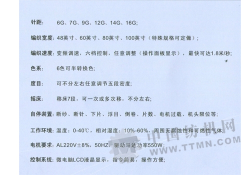 該系列設備采用電腦控制系統,可變頻調速,六檔控制,6色可半轉換色,實現高檔羅紋織物的高精密度編織。適用于腈綸、混紡、紗線等原料編織成衣領、袖口、服裝下擺、鞋套等服裝附件.