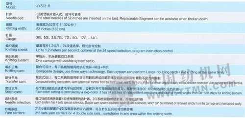 單機頭雙系統全自動電腦編織橫機,采用數字化技術實現橫機的翻針、吊目、挑孔、無虛線嵌花、提花、明收針及其他規則花型編織功能。可編織基本針織組織四平、單面等、多色無規則提花組織、嵌花組織(引塔夏)、絞花組織、挑孔組織等緯編組織。適用于真絲、絹絲、合纖絲、羊毛、腈綸、混紡、紗線等原料編織毛衫成衣及領子、門襟、下擺、袖羅紋、圍巾、袋口板、毛褲等附件。