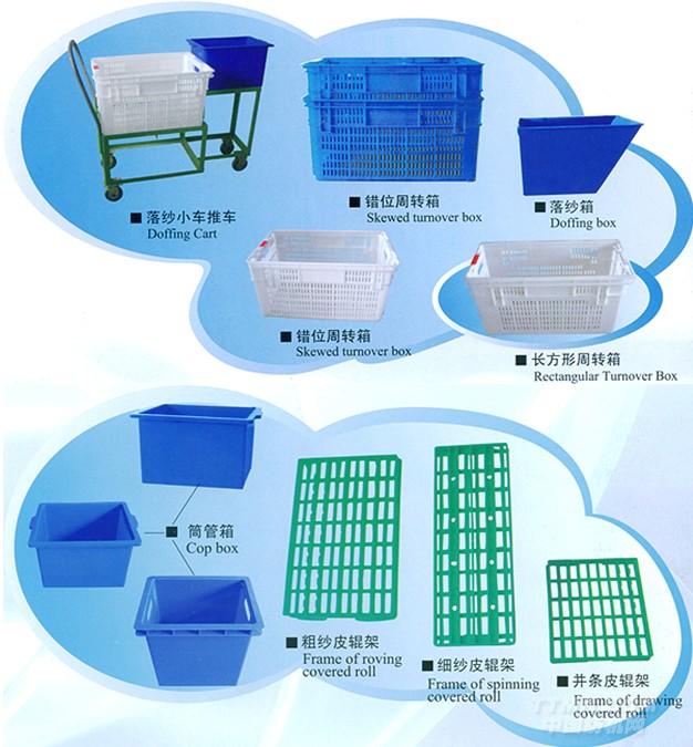 為適應紡紗廠在生產過程中所需要容器,近年來公司深入紡織廠進行探討論證,生產了一系列的容器產品來滿足用戶的需要,尤其是自行設計開發(fā)的錯位周轉箱,設計理念獨特、款式新穎、經久耐用,空箱能夠重疊,運輸堆放方便,滿箱錯位調向可以堆高幾層,減少占地面積。