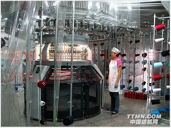 我公司擁有西德、日本等進口大圓機100多臺,大提花電腦橫機30多臺,臺車35臺。專業生產單、雙面大循環彩條布,移圈羅紋,大提花布,氨綸汗布,羅紋,天鵝絨,搖粒絨,扁機(橫機領),保暖內衣等各類精品針織面料及服裝。公司率先采用ERP管理系統,并且投入了300多萬元巨資在生產車間安裝了先進的除塵和空調設備,為產品質量的提高提供了有效保障。