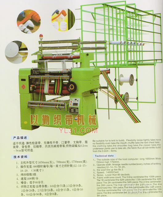 以勤織帶機械有限公司位于國際輕工城——溫州市平經濟開發區。是專業生產鉤編織帶機、花邊織帶機等帶類機械之專業廠家。擁有數臺CNC加工中心及各種高精度車床、鉆床、磨床、焊接設備等生產設備和檢測儀器,及一支能自己研發制造系列鉤編機、織帶機之專業技術隊伍,成功開發一系列電腦提花織帶機、無梭織帶機和一系列新型高速自動鉤編織帶機,近年來,公司技術不斷創新,并申請了多個發明專利,與實用新型專利。是浙江省優質紡織機械重點推廣產品,產品銷往全國各地并出口到臺灣、東南亞地區,深受用戶好評。