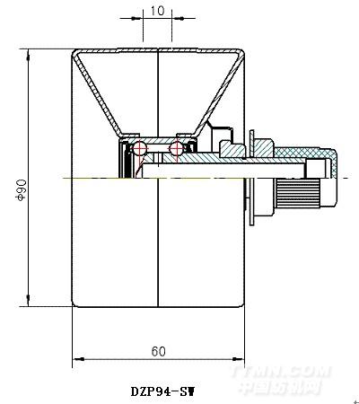 DZP94-SW型錠帶張力盤產品帶輪直徑90mm,輪寬60mm,安裝尺寸M14X1,最高轉速10000轉/分。