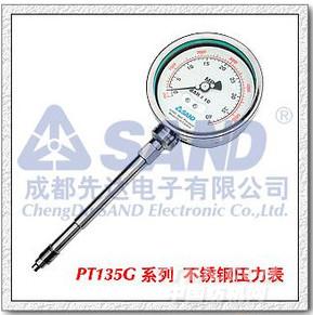PT135G系列 單功能直桿型機械指針式壓力表,廣泛應用與化纖、石油、塑料、橡膠等行業無電力設備或無電力供應環境下的高溫熔體壓力測量與控制。該系列產品采用高檔進口機芯保證測量精度,可靠性高;全不銹鋼外殼,美觀堅固,抗震性能優良;并可內置應變式壓力傳感器/變送器與智能壓力表配套使用,實現壓力的遠傳測量與控制。