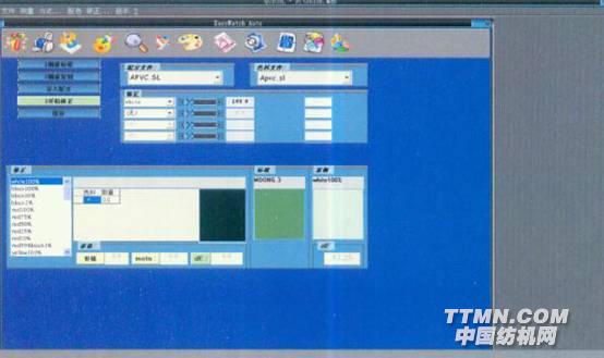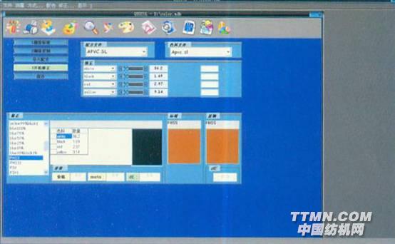 分光配色軟件通過分光測色儀對用戶使用的基色進行測試,來建立一個基色數據庫,在以后的使用中,只要檢測所需色樣,軟件即可給出此色樣的配方。此軟件可通過分光測色儀把客戶提供的標準色樣輸入到軟件當中,軟件根據母液及糊料數據庫自動計算出此標準色的配方,用戶在選擇配方后保存并傳送到小樣調漿系統,小樣調漿系統可根據此配方以及配方粘度自動完成母液以及糊料的加入。用戶可將完成的小樣配方重新展樣與標準配方在測色軟件中比對,如△E(色差值)達到客戶的標準測配方通過,可通過訂單直接傳送給調漿系統,如△E(色差值)不能達到客戶的標準,測色軟件可自動修色重新給出一個更精確配方,如此反復便可達到準確配方。