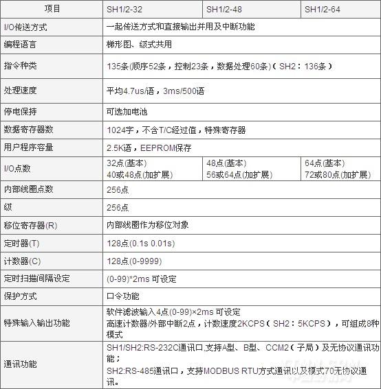 本體32點(diǎn)、48點(diǎn)、64點(diǎn),擴(kuò)展模塊8點(diǎn)、16點(diǎn),I/O點(diǎn)最大配置為80點(diǎn)