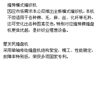 縫神機械有限公司為一家生產毛織機械為主的臺資企業,由現任董事長李木吉先生于1964年創始于臺灣省臺南市,因當時臺灣經濟正值起步,縫盤機全數由美國、日本進口,李木吉先生即開始研發國人自制的第一臺縫盤機。時值1990年大陸對外開放,李木吉先生毅然決定引進先進設備及技術,于東莞投資設立本公司。本公司憑借40年來的技術,經驗,不斷創新,在同行業中可稱得上是最先領域,所生產出的“玫瑰”、“赤崁”縫盤機鄉喻亞洲。我公司秉承團結、務實、開拓、進取的企業堅持“以誠為本,顧客至上,信譽第一”的原則。所生產的產品遍布大陸市場外銷至香港、臺灣、日本、印度、東南亞、及南非等各國或地區,根據各市場不同的要求及質量標準而設計和制造,為一家設備齊全、技術力量雄厚的企業。目前正加快實現現代化的資訊管理,實行MRP電腦數據生產系統及PDCA循環管理方式、5S、早會教育評比等,并2002年引進ISO9000國際品質認證系統,以多元化機種發展更適應國際市場的有力競爭。