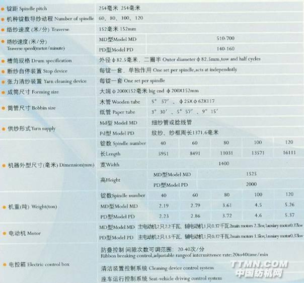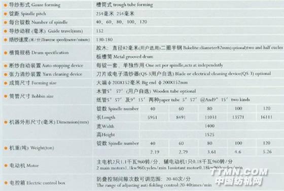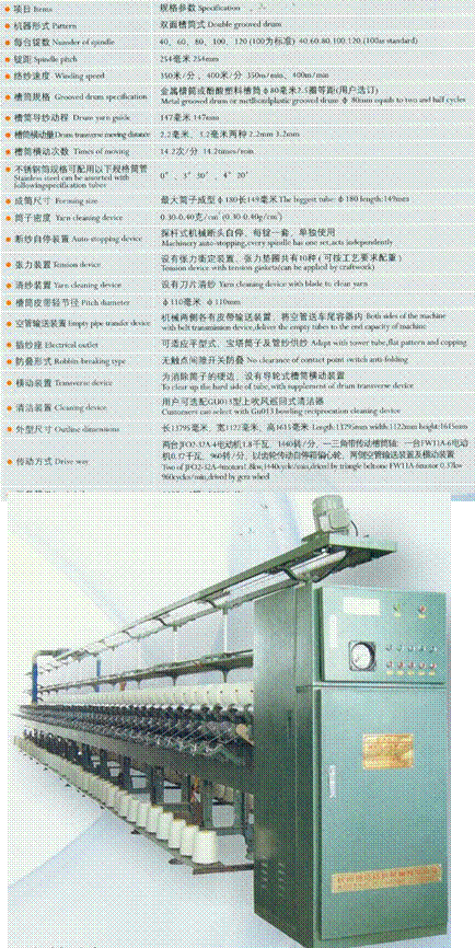 本機系用于將絞紗繞成寶塔形筒紗,供整經(jīng),并紗或針織等使用。