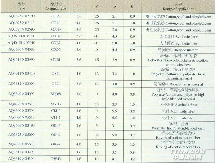 預分梳板針布有FD4:40齒/平方英寸:FD6:60齒/平方英寸:FD9:90齒/平方英寸。