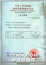 我廠是全國紡織總會會員廠之一,是江蘇省紡工廳下屬生產(chǎn)各種針織、毛紡、印染后整理設(shè)備及化工設(shè)備的專業(yè)廠家,具有江蘇省質(zhì)量技術(shù)監(jiān)督局生產(chǎn)壓力窗口的D制造許可證。