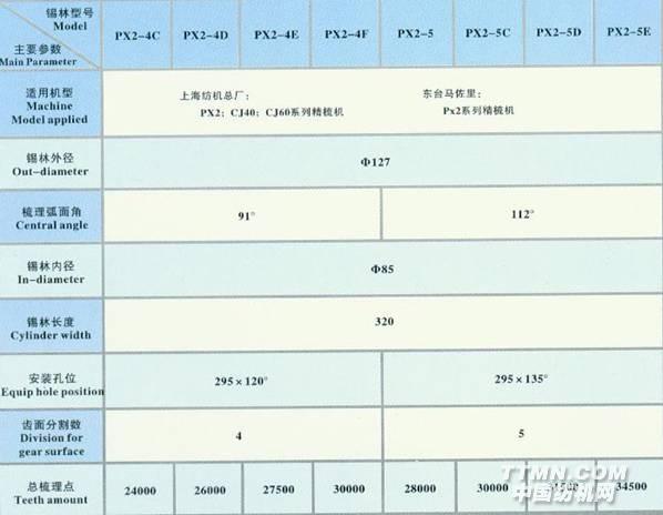 選用瑞士進(jìn)口精梳齒條錫林型號規(guī)格表:(PX2系列)