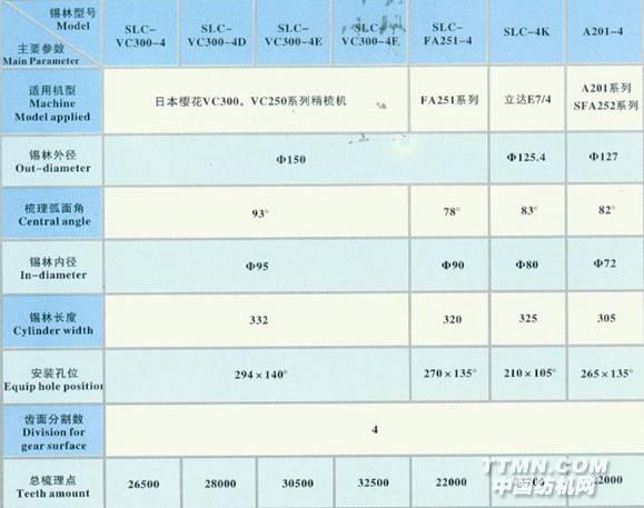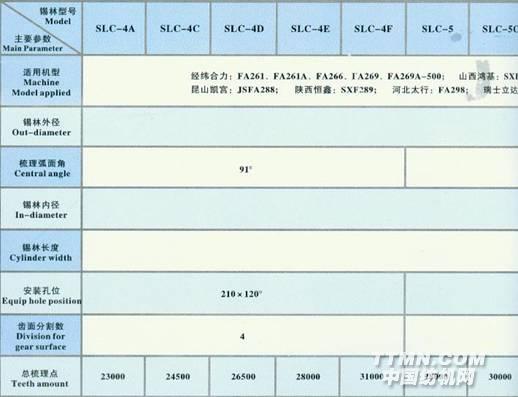 選用瑞士進(jìn)口精梳齒條錫林型號規(guī)格表:(立達(dá)系列)